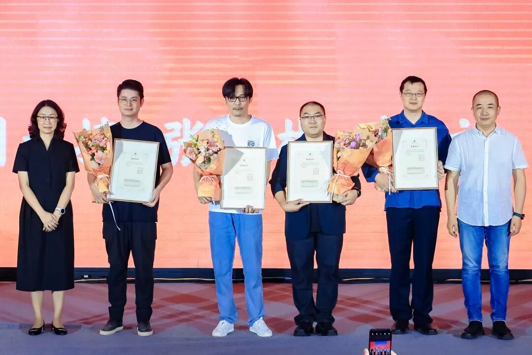 中国美术学院党委副书记傅巧玲、副院长韩绪为省级领军人才项目入选者沈乐平,省级青年人才项目入选者刘元捷、张书彬、高初颁奖