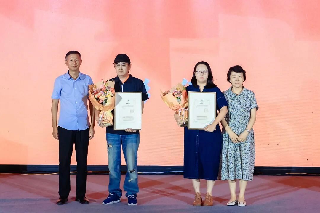 中国美术学院纪委书记陈于杰、副院长夏文莉为省级领军人才项目入选者段卫斌、省级青年人才项目入选者彭倩颁奖
