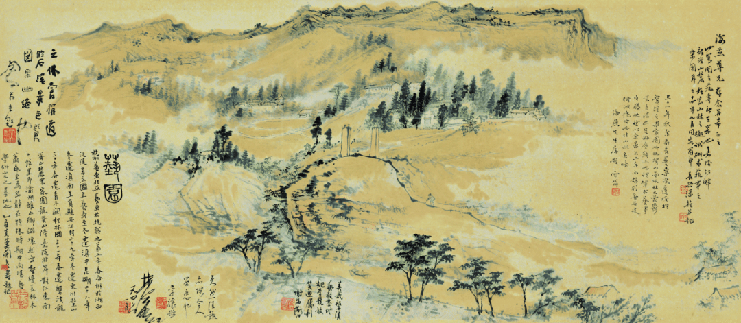 《磐溪艺苑图》 潘韵 纸本设色 40x92cm 1945年 中国美术学院美术馆藏