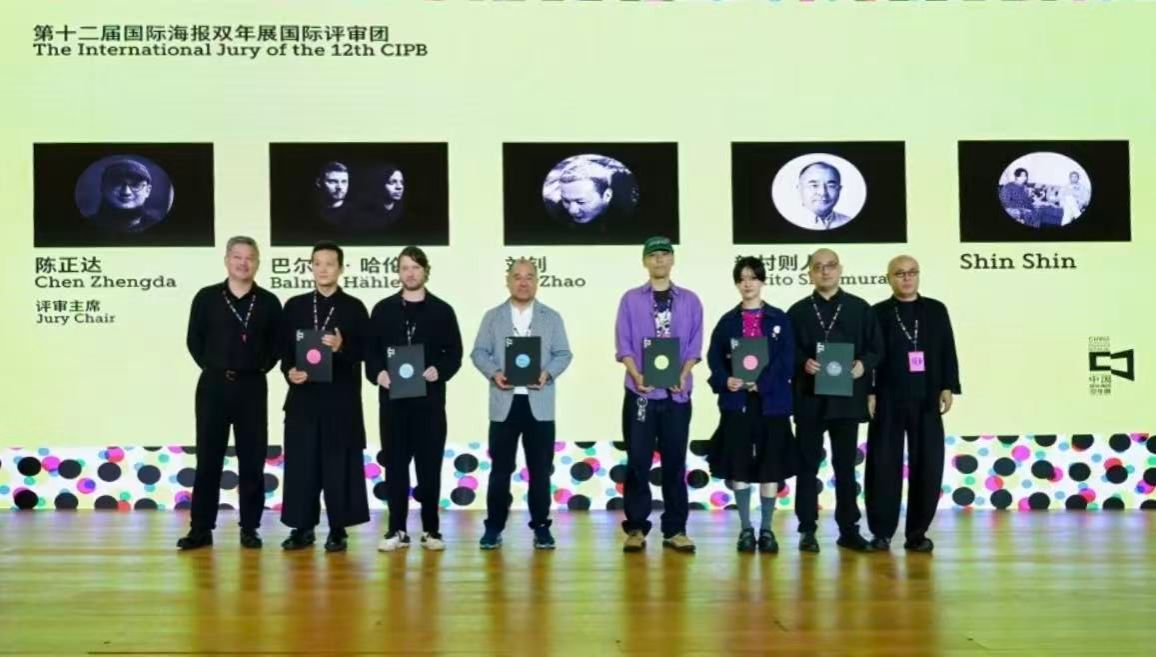 金一斌、叶瑛、中国国际海报双年展学术委员会委员代表们和本届双年展终评评审团为第十二届中国国际海报双年展启幕。