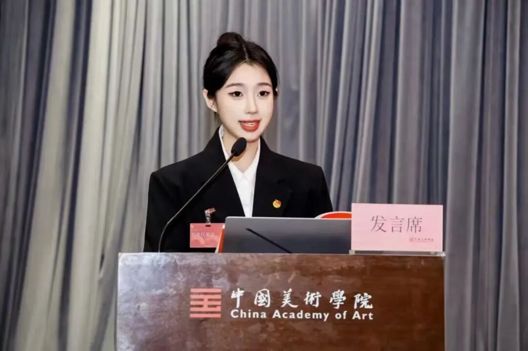 丁沐尧代表中国美术学院第十一届研究生委员会作工作报告。研究生会过去一年努力打造优质创新生态体系,坚持“学术素养+创作能力+综合素养”同步提升的导向,持续完善研究生学术交流机制。推进服务社会与艺术融合,坚持“以乡土为学院”“以美心唤人心”的理念,鼓励研究生深入基层、扎根人民,在乡村振兴、社区美育、非遗传承、红色文化弘扬等领域开展艺术创作与社会服务。推动科研成果转化与创作实践融合,打造具有国美特色的研究生创新实践品牌。