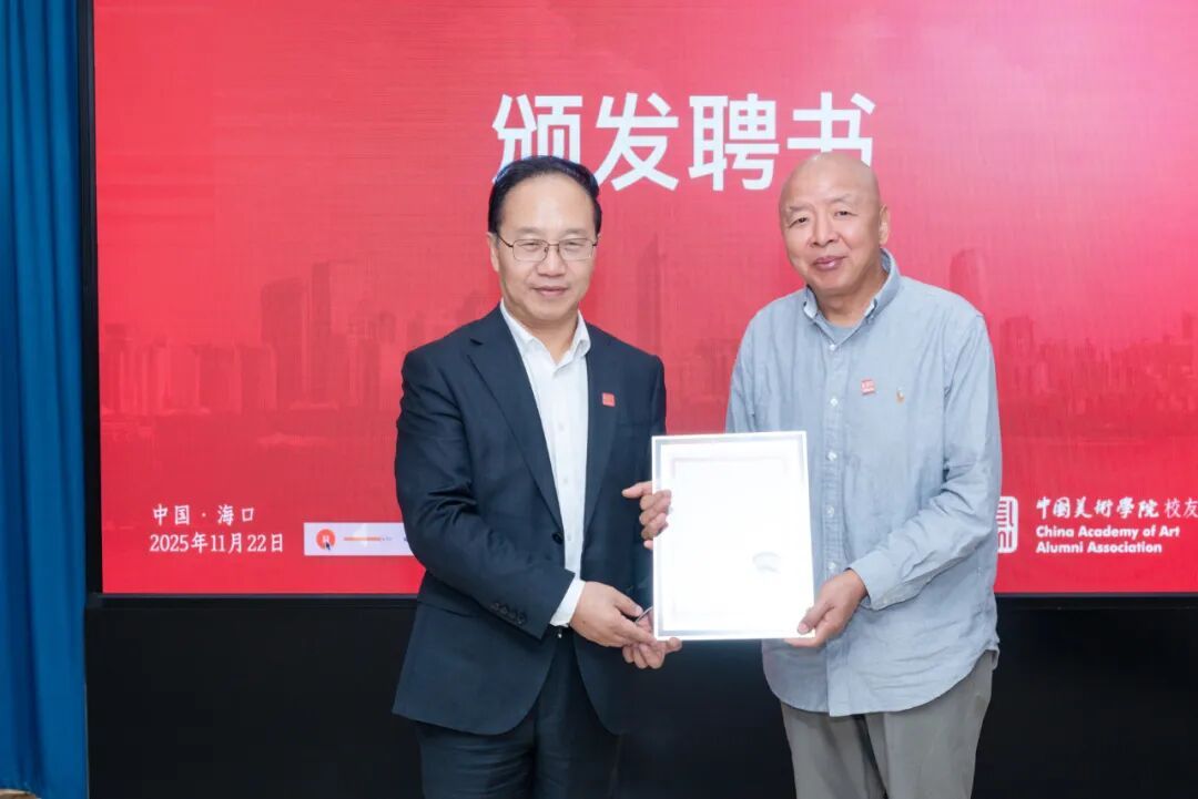 中国美术学院党委书记金一斌为新一届理事会会长颁发聘书