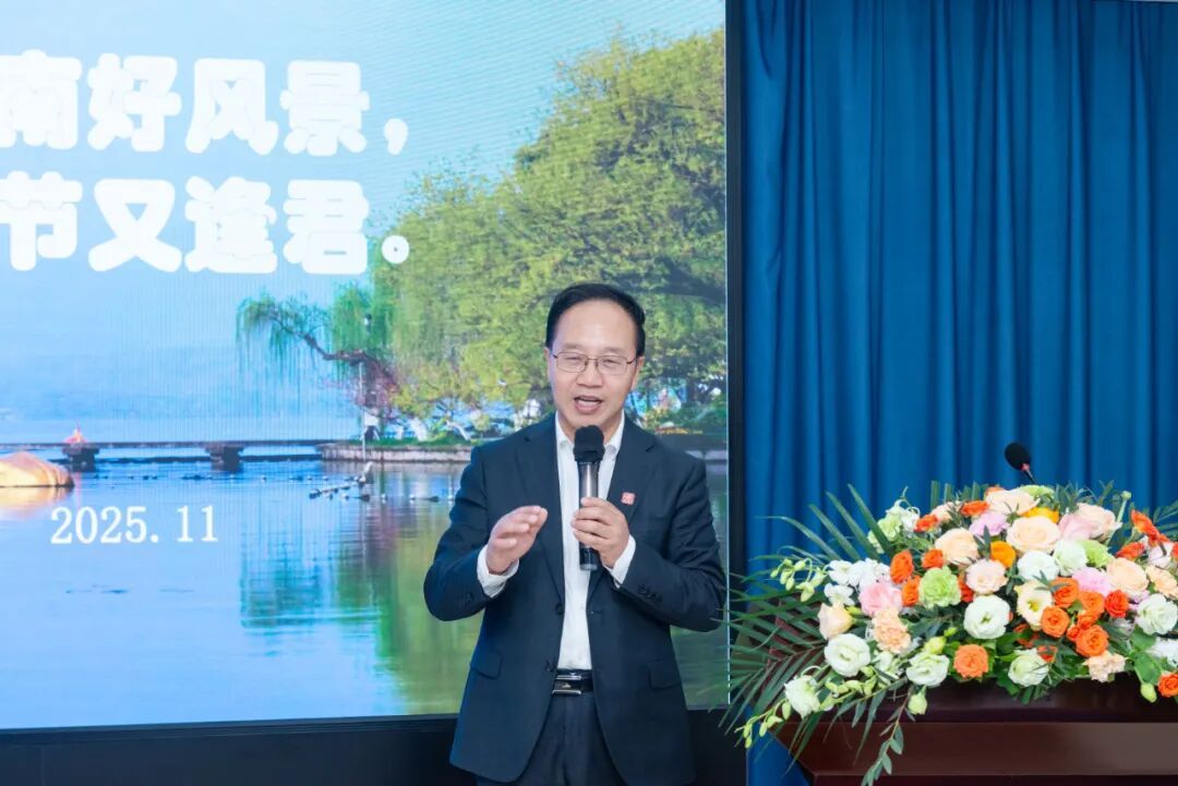 新任会长赵福才在致辞中感谢第一届理事会的辛勤付出,为海南校友会奠定了坚实基础。他回顾了国美岁月对校友的深远影响,提及国美 “会通中外、兼容并蓄” 的精神与海南自贸港的特质相契合。他表示,校友会既是在琼国美人的 “温暖之家”,也是艺术与时代、母校与海南联动的桥梁。未来,他将与校友会一道,以 “服务校友、反哺母校、助力海南” 为初心,建强校友之家、搭建交流平台、做好桥梁纽带,推动校友合作与资源共享,引入母校艺术资源、展现海南文化魅力,让国美精神在海南生根结果,以艺术助力自贸港文化繁荣。