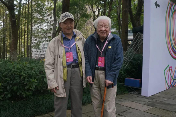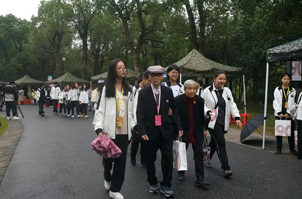 学生代表向附中老教师献花