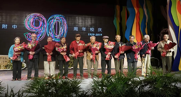 庆典现场领导嘉宾与附中师生校友合影