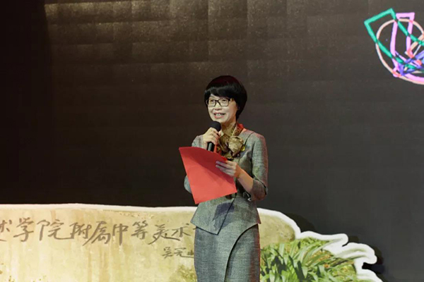 她指出,附中肩负着引领基础美术教育改革、推动学校美育工作、培育青少年美好心灵的重要责任。希望附中继承和发扬90年来优秀的办学传统,百尺竿头,更进一步;希望附中的老师们始终坚持立德树人、培根铸魂,自觉做有理想信念、有道德情操、有扎实知识、有仁爱之心的好老师;希望附中的同学们勤奋学习、勇于创造,努力成为未来国家建设的栋梁之才。要“不忘初心、牢记使命”,以国美人特有的使命和担当,坚守为党育人、为国育才,打造过硬的师资队伍,培养学生过硬的综合素质和艺术素养,在实现中华民族伟大复兴中国梦的历史进程中,续写华章,共同创造新辉煌。