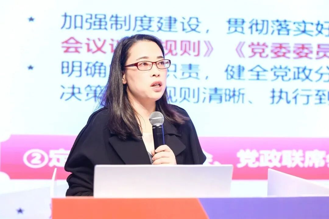 滕影介绍了“三立方”立体矩阵党员培养教育一体化模式,通过“三支队伍”、“三个课堂”、“三类成效”的互促共融,实现“教”“学”良性互动、“供”“需”精准匹配,着力强化党员培养与党建品牌建设。
