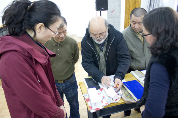 大赛评选后,吕敬人教授和刘晓翔先生还为中国美术学院的同学们展开了一场别开生面的演讲。期间,吕敬人做了“当代语境下的书籍文化传承”为题的演讲,刘晓翔做了“纸尚”为题的演讲。两位老师精辟、新颖的观点,一丝不苟的敬业精神鼓励着每一位学子,让同学感受到如沐春风,引发了同学们极大的专业热情。