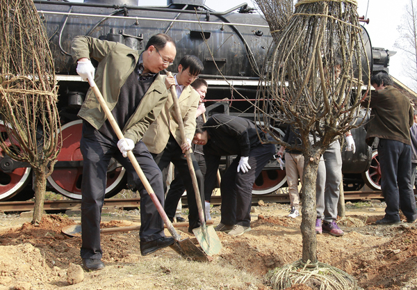 植树活动结束后,院领导钱晓芳、许江、孟云生还检查了学院山北生活区和学院东大门银杏林的绿化改造项目,对学院的绿化工作给予了充分的肯定并对下一步的工作提出要求。