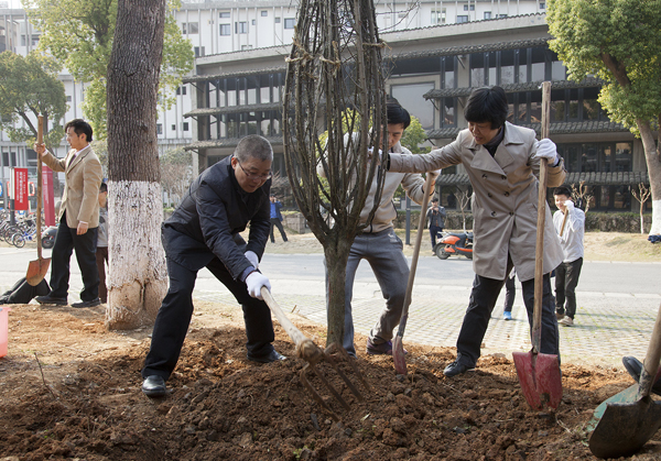3月17日上午,学院在象山校区开展了“植树造林美化校园,创建绿色生态和谐校园”的活动。学院党委班子成员钱晓芳、许江、宋建明、胡钟华、孟云生、刘正、姜玉峰以及院办、校园建设和管理处、团委(学生会)等四十余人参加了植树活动。