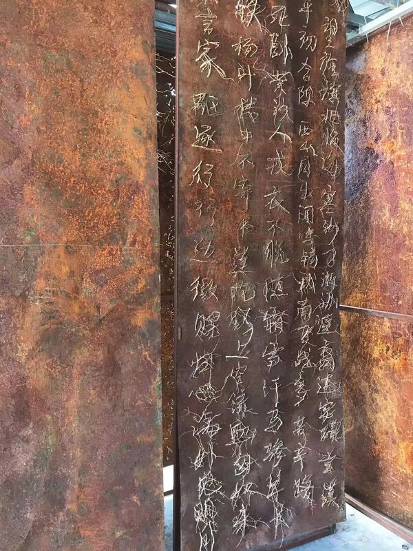 石冰《从军行》瓦楞板铁皮做锈、戈壁野草等植被 300x100x60cm×5件 2024