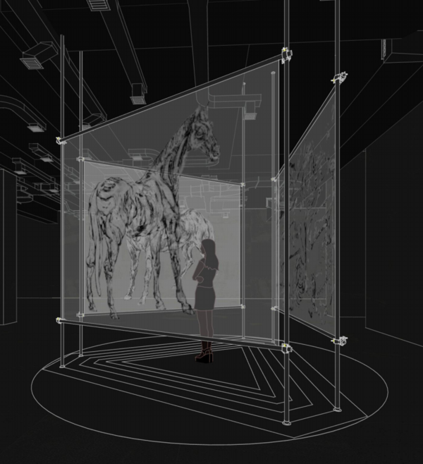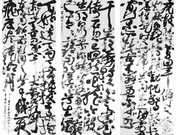 毛泽皓《生死回眸》380×310cm×3幅 半透纱水墨绘画装置 2024