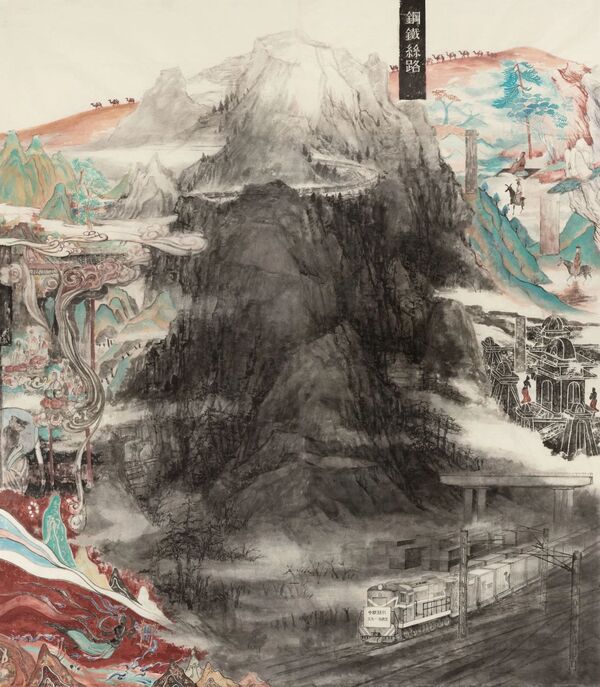 陈薇因《钢铁丝路》纸本设色 200×240cm 2023