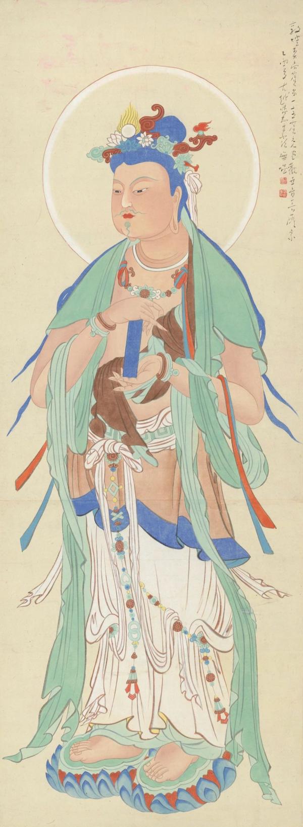 潘藉兹《临敦煌莫高窟293窟初唐观世音菩萨像》 67.5×221cm 1945