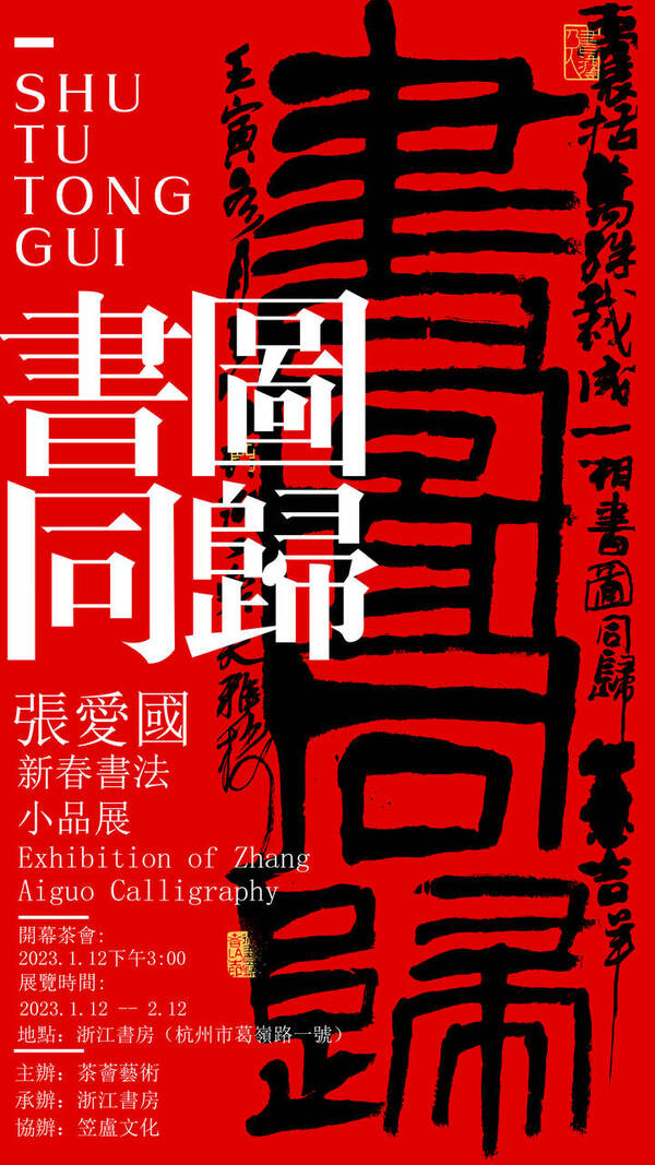 1月12日,“书图同归——张爱国新春书法小品展”在杭州西湖区葛岭路一号浙江书房开展。展览由茶荟艺术主办、浙江书房承办、笠庐文化协办,共展出张爱国先生的书法小品代表作二十幅。