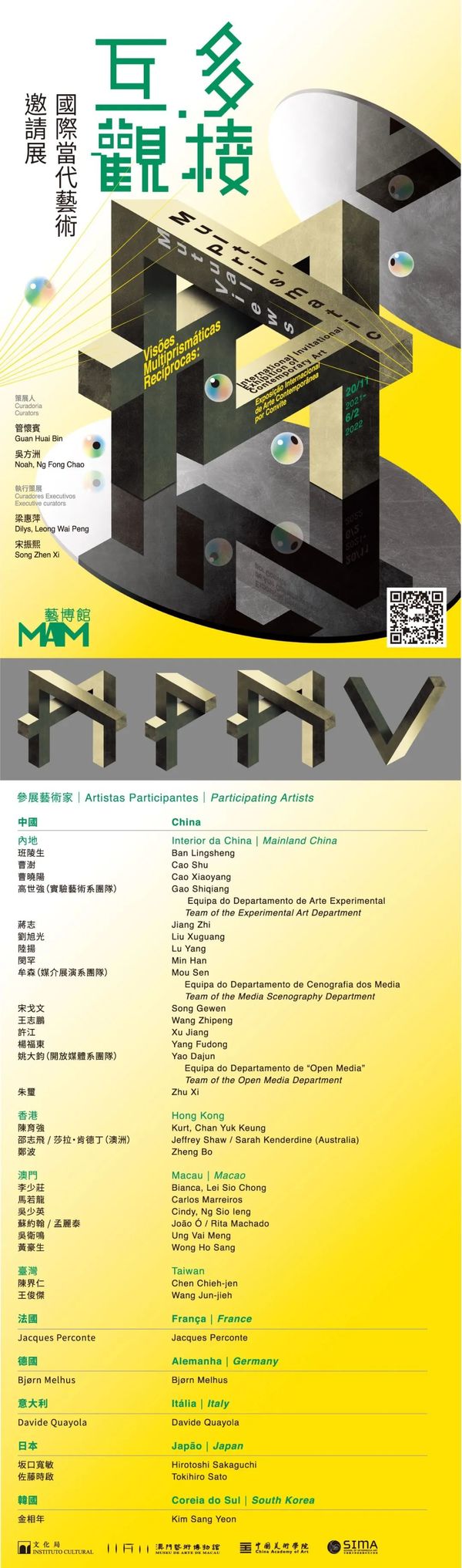 2006年,澳门艺术博物馆与中国美术学院联手,在澳门举办“显微境.观——中国当代艺术展”,邀请内地及港澳台地区26位艺术家参加;15年后,两间机构再度携手,举办“多棱‧互观——国际当代艺术邀请展”,以作为跨时空的学术性回应。这样的策展安排,肯定会成为澳门当代艺术史上的佳话;而参展艺术家由26位增至32位/组,区域由中国扩大至国际,则彷彿是澳门这十多年间经济社会发展的隐喻,以及澳门艺术博物馆所具有的国际视野与网络的见证。