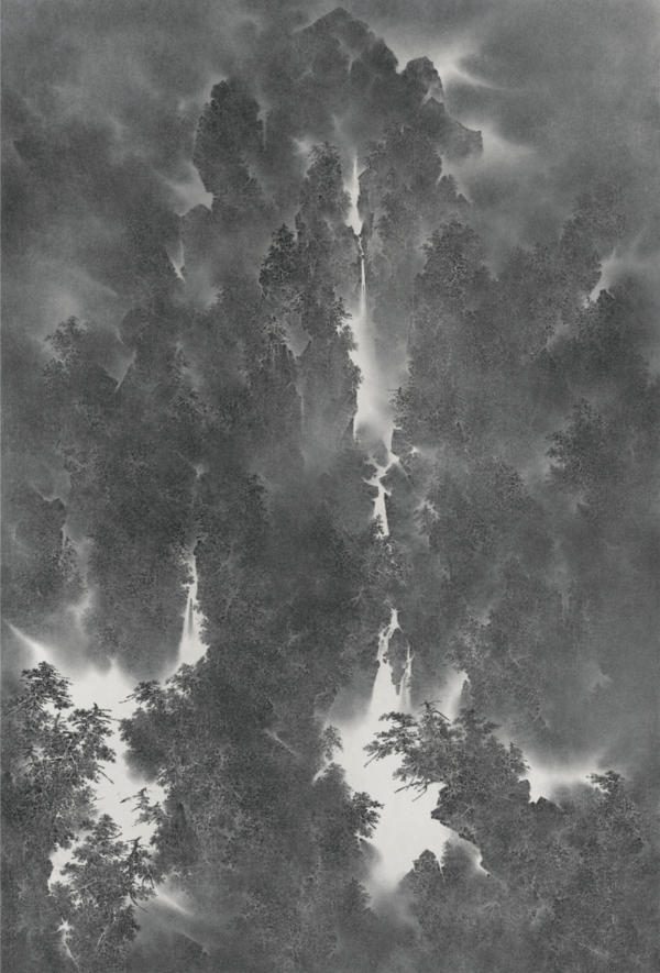 吴卫鸣,《水声音感》,245x300cm,丙烯、木炭、麻布,绘画,2017-2020年