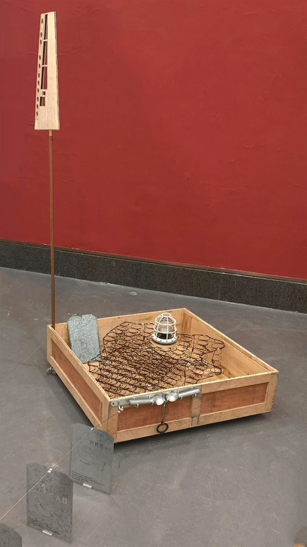 朱玺,《墟》,200x200x50cm,玻璃、木、金属,装置,2021年