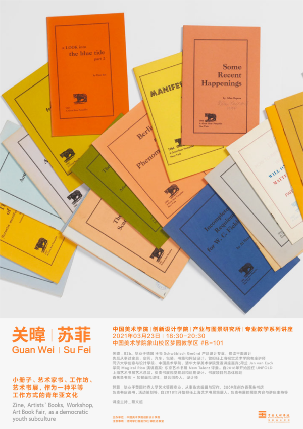 香蕉鱼书店以 Zine in Progress 为自身持续关注和推广的青年文化主题,作为上海最小文化复合单位,提供给创作人从作品推荐、书籍寄售、独立出版物设计、Zine Workshop、Binding Talk 创作分享会到个人 /群体展览策划等多方面的合作模式。由香蕉鱼主办的豆本征集项目,豆本城市巡展和艺术书展也是国内外创作人集体交流的媒介平台。自2011年由香蕉鱼创办的印社品牌加餐面包也提供创作人从RISO孔版印刷、手工丝网印刷到书籍装订等个性化高质量的印刷服务,借此推动国内独立出版文化和印刷文化的蓬勃发展。2018年香蕉鱼书店发起 UNFOLD 上海艺术书展并成为主办方之一,从展示艺术手工书的艺术性、纸张和印刷的多样结合、普及艺术载体的多样性和专业性知识讲座等多个方面来向公众传播印刷的美好,艺术阅读在陶冶情操、享受艺术普及和带动艺术衍生品产业方面的重要性。本次讲座将从香蕉鱼近十年的工作室自发项目介绍我们一直在谈论的小册子、艺术家书、工作坊、艺术书展,它们如何作为一种平等工作方式的青年亚文化与世界其他同好们展示我们自己的风采。