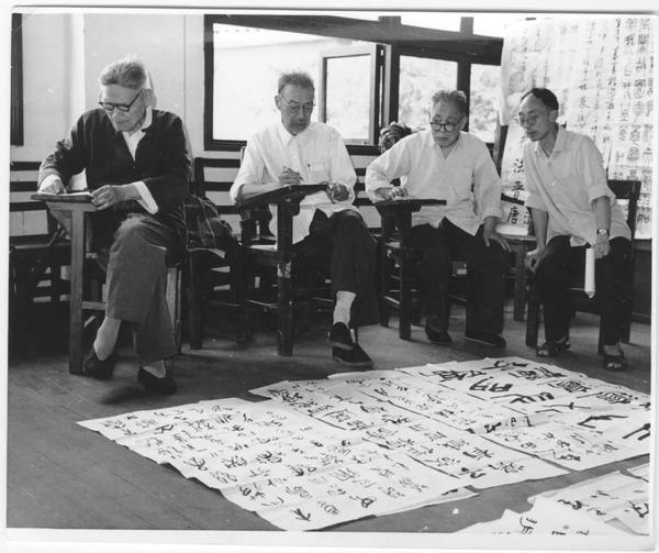 陆维钊,沙孟海,诸乐三,刘江四位先生在浙江美术学院评卷