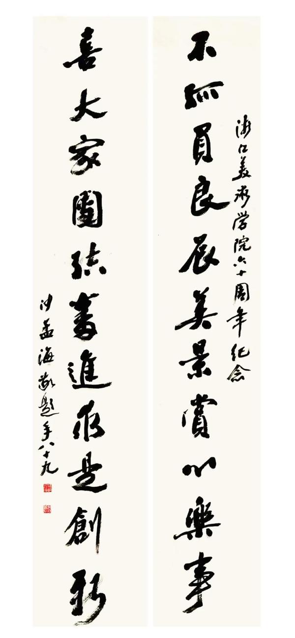 沙孟海为浙江美术学院六十周年纪念所作行书联,1988年