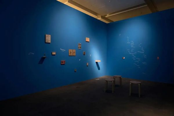 二楼的"虫洞日志"部分涵盖了本科生相对比较新的作品。整个墙体包含了将近30件作品,像一个太空舱:所有作品是悬置的,就像是在宇宙时空中的某一个碎片停滞的状态。"白洞"板块中设置了两件非常好的的作品,分别由陈建和徐勤同学创作,是「近未来」主题下的三屏影像个影像用了非常科技化的拍摄方。他们在创作期间用了很多的时间去勘景,他们也有新的外援介入——做3D max和4D影像的好朋友,整个作品的体量很大,在声音制作上是相对具有技术含量的。