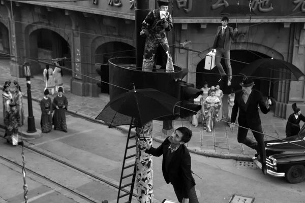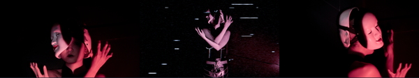 观众既是观众也是演员,穿梭在三重时空交叠的电影之中。 实际上我们策展团队第一次去到韩岭老街的时候,对江南的水乡古镇特别有感觉,很快的形成一个基本的策展设想:把三重时间叠加在一起。因为韩岭老街有一个特点:一条活着的古街。我们看到有老奶奶靠在墙角晒太阳,买菜的人们还有拎着公文包走过的年轻人都在这条街上居住、生活着。我们觉得可以把三重时间叠加在一起,一重作为古建筑群:代表着传统的世俗生活世界,一重就是正在生活的、现实的、当下的时间维度,还有一重也就是我们设想的,将跨媒体艺术——空降而来的赛博格意象跟视觉的图像笼罩在这层老街上面。这三重时间叠加,形成了一整个街区,就像一本电影一样。不管是还是游客也好、居民也好,行走在其间,既是观众也是演员。所以我们整个策展思路基本上是按照一本电影的方式来构想的,这也非常契合“近未来”的主题。