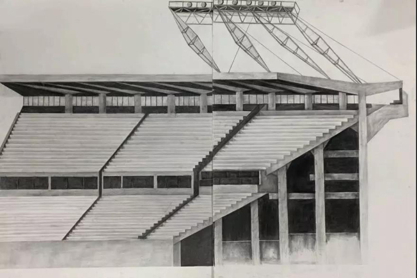 主要研究方向是工体的结构,因为工体不同于其他建筑,它是一个体育场里面大部分的空间是田径场并没有非常实际的建筑意义,它的主要结构就在看台前的那一圈,并且他经历过5次改造,每次都在结构上进行了一定的改造,因此它的结构必定是它最有趣的地方。我们想结合资料和照片,用现象素描的画法把工体的剖面画出来。