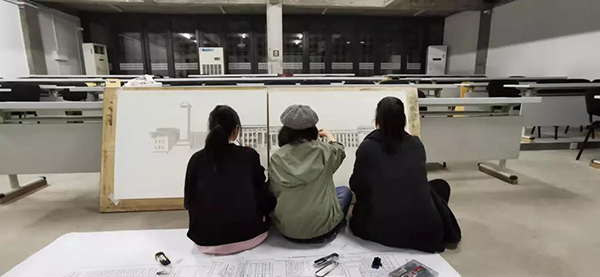 建筑艺术学院的学生们对十大建筑进行了实地调研后,将搜集的资料进行了整理、分析。通过现场感受和对资料的分析,同学们根据每个建筑的特点对其进行了绘画创作,希望通过一种不一样的视角为观众带来他们眼中的十大建筑。