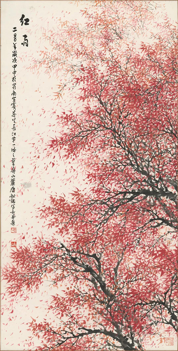 《红雨》 唐献瑞 纸本设色 137x69cm 2000年