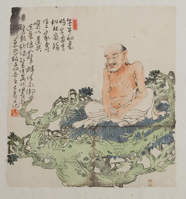 《无量寿佛》 张家寿 纸本设色 29x29cm 1942年