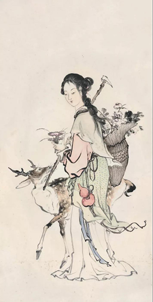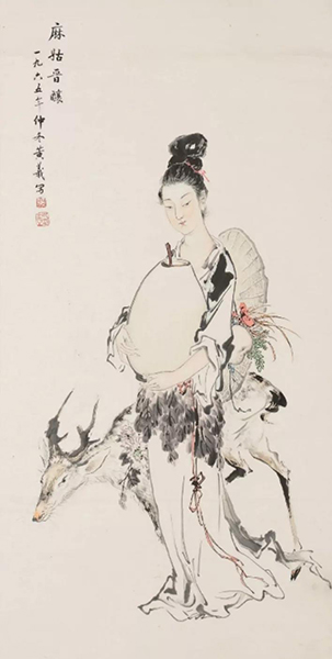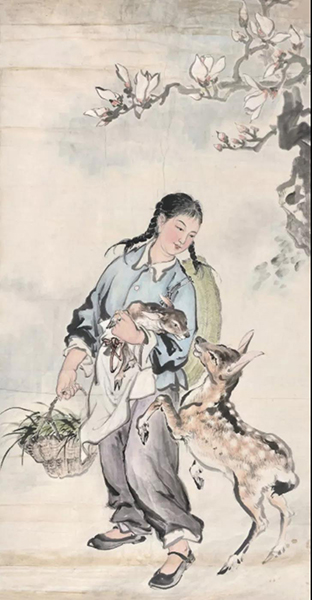 ▲ 《抱鹿少女》136cm×68cm 纸本设色