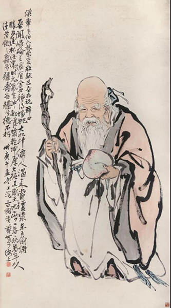 ▲ 《寿星献桃》150cm×82cm 纸本设色 1930年