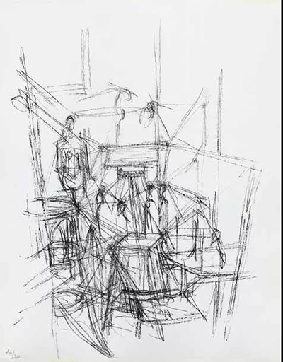 阿尔贝托·贾科梅蒂(Alberto Giacometti),20世纪现代艺术的代表艺术家。他出生于瑞士,1922年定居巴黎,早期深受立体派和抽象派艺术影响;1929年参加超现实主义运动,成为此派代表性的雕塑家;1935年脱离超现实派,回到画室从头开始面对眼前事物写生。贾科梅蒂发现,真实的“视觉结构”揭示的是一种既显又隐的存在,而绘画向绝对真实的逼近应是一种反复“抹去重来”的过程。贾科梅蒂的绘画如同“刺绣”的背面,那些密密麻麻、纵横交错、层层叠叠的“线索”正是艺术家的视觉轨迹。