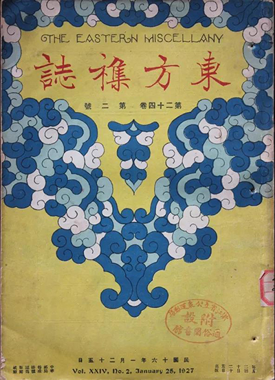 《东方杂志》,第二十四卷第二号,1927年1月,陈之佛 封面设计,大16开(胡迪军藏)
