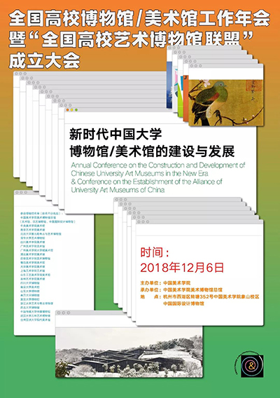 由中国美术学院美术博物馆总馆发起,2018年12月6日,在中国国际设计博物馆(中国美术学院象山校区,杭州市西湖区象山路352号)将举行“新时代全国高校博物馆、美术馆的建设与发展——全国高校博物馆、美术馆工作年会”。会议包括馆长工作年会及博物馆、美术馆展览主题、研究与典藏、公共教育及推广专题三个工作座谈会,探讨高校博物馆的现状与发展。同时,还将举行“全国高校艺术博物馆联盟”成立大会。届时,文化和旅游部艺术司、国家文物局博物馆与社会文物司等相关主管部门领导和全国三十家高校博物馆、美术馆馆长及展览、公教、研究等职能部门共80余人与会。