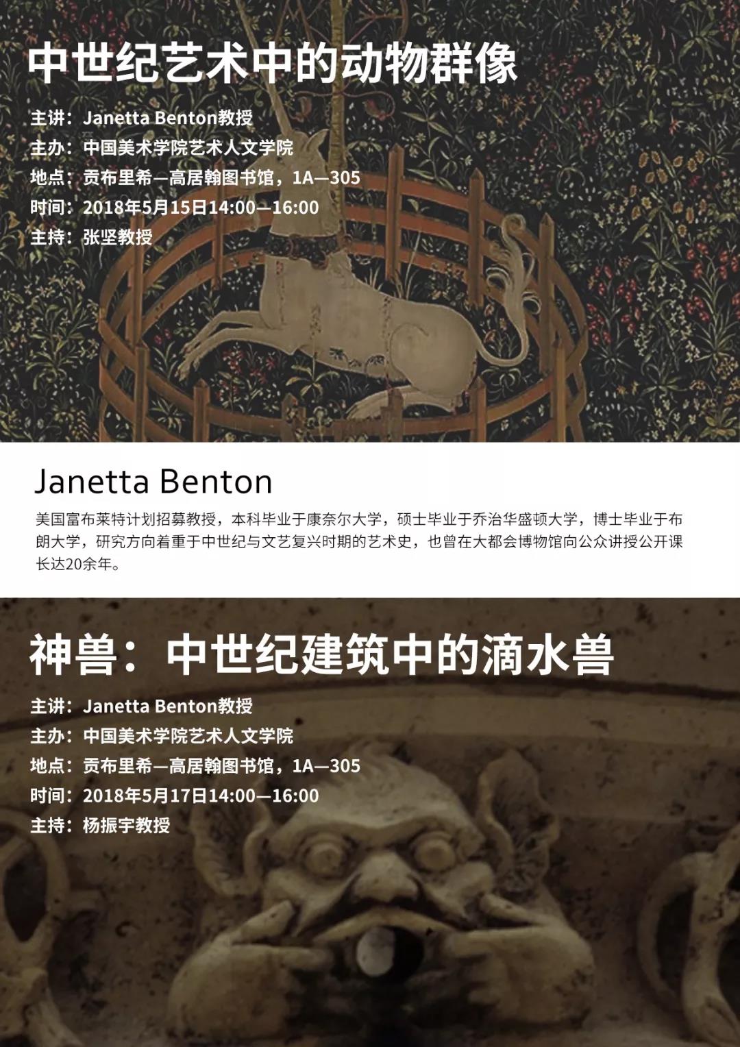 中世纪的艺术中出现过无数对动物的描绘,或真实或虚构。本次演讲,Janetta Benton教授带来丰富的图像资料,向我们展示中世纪雕塑家、画家、插图家、彩色玻璃工人以及挂毯织工手下创作出的动物群像。其中,特别是那些被想象出来的“复合生物、神奇动物”(由不相关的动物不同的身体部位组合而成),将被深入探讨。