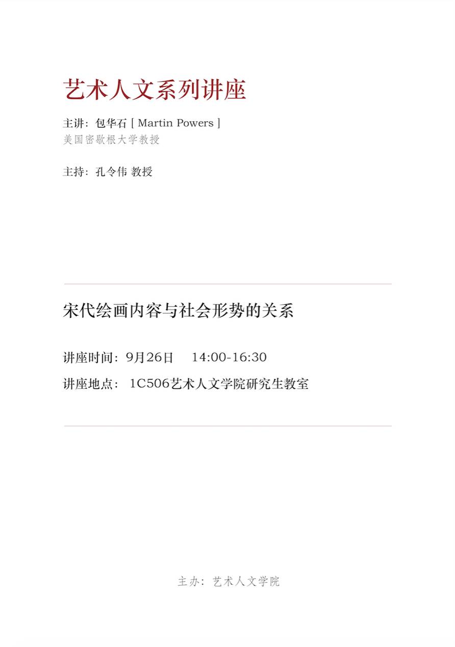 主讲:包华石[Martin Powers] (美国密歇根大学教授)