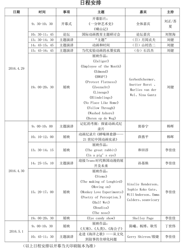 “匠心独运——东方语境下的动画精神” 第十二届中国国际动漫节国际动漫教育高峰论坛暨第三届中国(杭州)国际青年动画双年展将于2016年4月29日至5月1日期间在中国美术学院象山校区举办。本次双年展力邀国际各大知名动漫院校、动漫影视公司的精英专家开展国际动画教育论坛活动,将举办高峰论坛、工作坊、动画展映等一系列学术活动,共同分享各大高校艺术教育与青年动画家成长的创新理念和实践成果。活动论坛单元-“匠心独运——东方语境下的动画精神”国际动漫教育高峰论坛、“人文动画的工匠精神”名家讲坛、“人文动画的东方智造”名家工作坊邀请了如日本动画前辈月岡贞夫教授、著名日本动画家山村浩二教授,台湾艺术大学多媒体动画艺术系石昌杰教授,荷兰动画节主席哥本(Gerben Schermer)先生、美国梦工厂海外总监Shelley Page、韩国尚明大学校艺术大学漫画动画学科孙基焕教授、英国Cartoon saloon公司《海洋之歌》联合制品人Gerry Shirren等专家研讨动画的方方面面。开幕式还将展映今年入选法国昂西动画节主竞赛单元的由中国美术学院曹澍老师导演,一年级基础部同学所共同创作的《一分钟艺术史》、由我院青年教师李佳佳博士所创作的具有东方精神的《啸山记》一片。同时“人文动画的视觉叙事”国际青年动画展单元也将展出来自英国、荷兰、日本、中国优秀青年动画家作品,并现场分享创作历程。