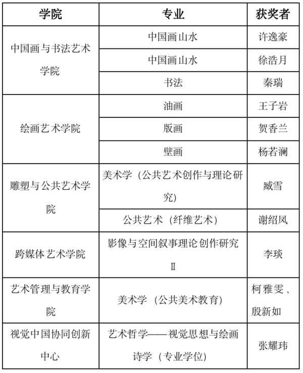 浙江中国美术教育基金会每年在学校设立多项奖学金、助学金及奖教金支持学校发展。2023年,实际发放62.4万元,受益人数达81人。其中,共12人获得崇丽艺术优秀作品奖(10人10000元/人,2人5000元/人);共8人获得NORHOR奖助学金(奖学金10000元/人,助学金5000元/人);共8人获得万泰铝业助学金(5000元/人);共31人获得2023研究生林风眠奖学金(博士生:10000元/人、研究生6000元/人);共4人获得诸乐三奖学金(5000元/人);共2人获得嘉德徐邦达艺术教育奖学金(10000元/人);共16人获2023教师辅导奖奖金(10000元/人)。获奖名单如下: