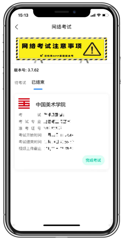 “艺术升”主机视频提交后,考生在“网络考试”页面点击“已结束”,看到如下页面才表明布展视频提交已完成(如图12)。