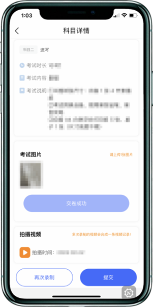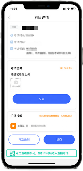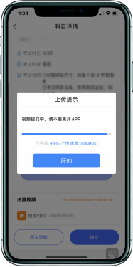 在考试当日晚上20:00前,完成提交考试科目布展的主机视频(如图10)。