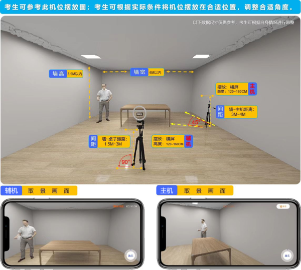 选择安静整洁、光线明亮的独立场所作为考场,视频拍摄示意如图1: