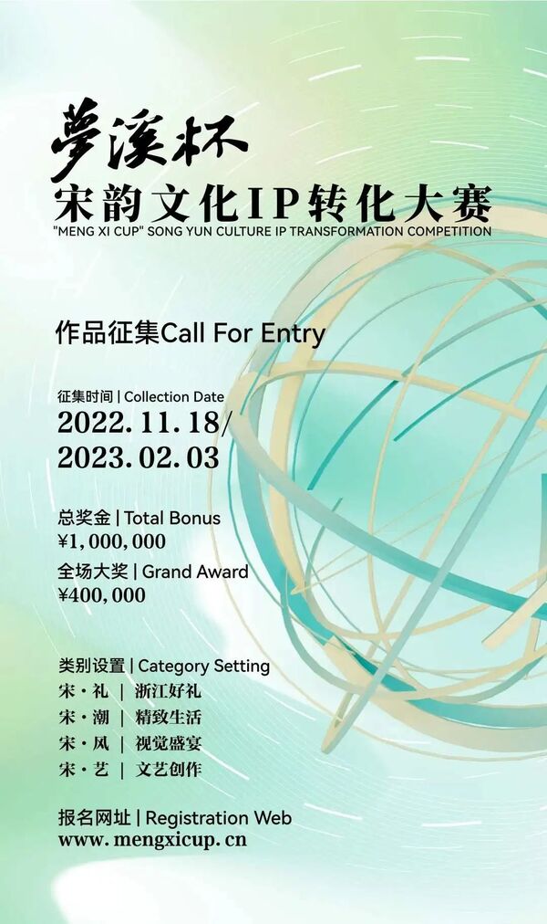 为推动宋韵文化创造性转化和创新性发展,深入挖掘宋韵文化中的历史意义、精神内核和时代价值,让千年宋韵在新时代“流动”起来、“传承”下去,拟举办2022“梦溪杯” 宋韵文化IP转化大赛,以创新设计为核心,以市场为导向,进行文化创意产品的创新设计与再造,深度呈现宋韵文化与当代设计的交融,打造宋韵文化创新转化新名片。