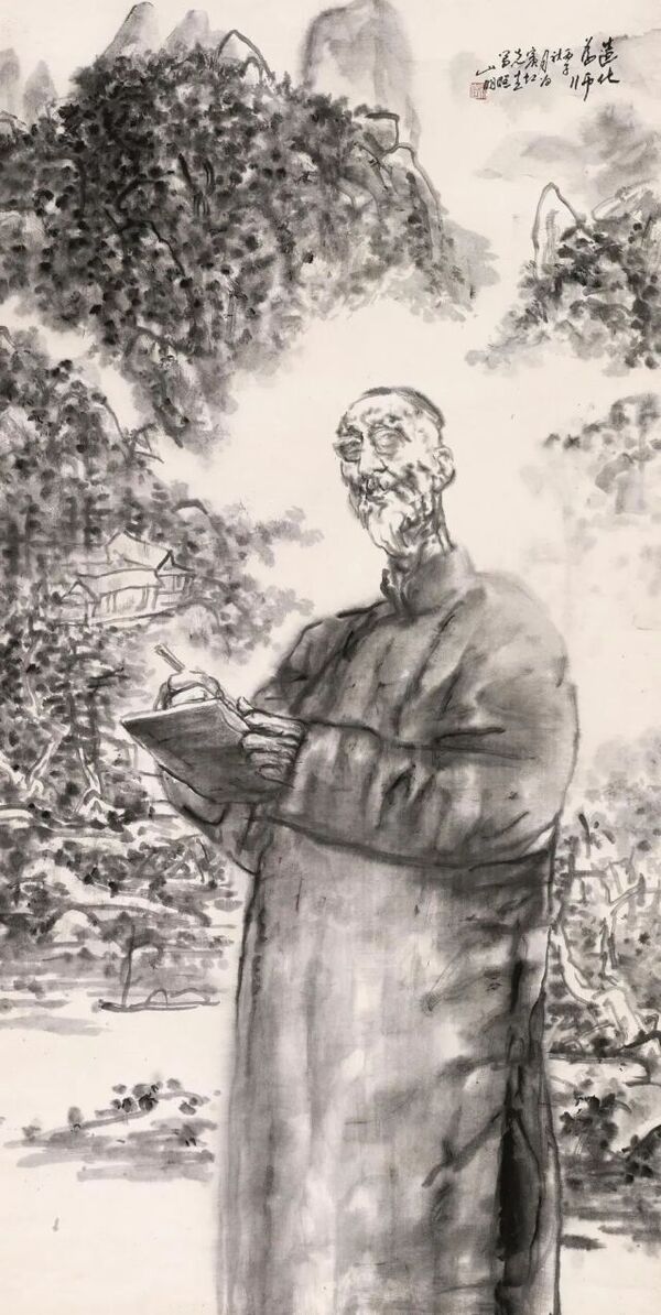 吴山明 造化为师——宾虹先生肖像 188cm×94.5cm 纸本水墨 1996年