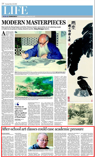 "Fine art is a good way to fill in after class time and resolve the problem," Xu says. "Extracurricular activities need to be organized by schools rather than being controlled by unregulated institutions off campus."