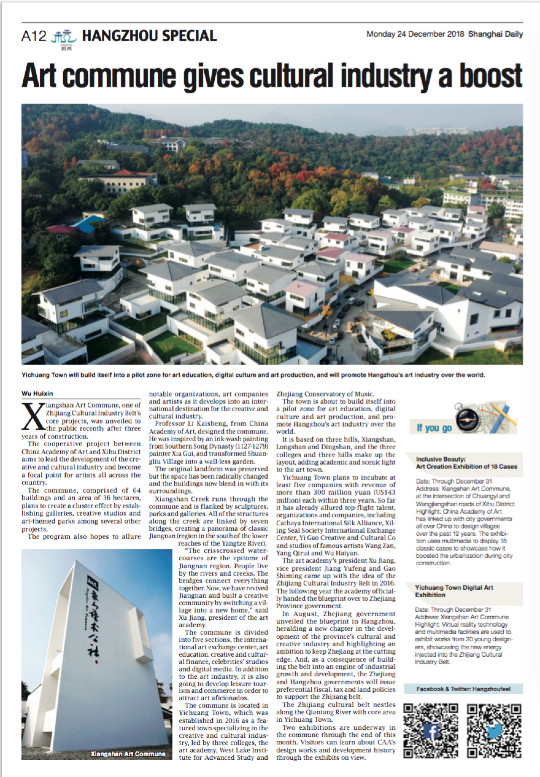 The commune is located in Yichuang Town, which was established in 2016 as a featured town specializing in the creative and cultural industry, led by three colleges, the art academy, West Lake Institute for Advanced Study and