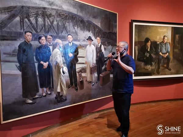Xu Jiang introduces graduate works to visitors.