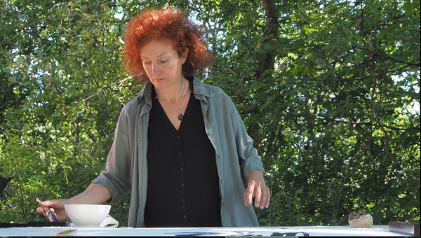 In 1999, she returned to France and engaged in painting and calligraphy teaching and exhibitions. She recalled her study in China, 'I clearly remember how I felt every day when I first learned calligraphy. I was very much attracted to the goat-hair brush that was difficult to control and the diffusion on the rice paper. '