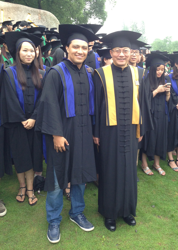 Group Photo of Arturo and Xu Jiang at the Master's Graduation Ceremony in May of 2013